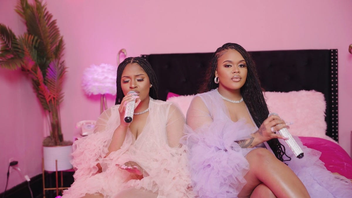 The acoustic rendition of their single “Don’t Deserve” has been my latest R&B obsession and the accompanying video performance only makes it better. Set in a cozy, ultra-feminine pink bedroom setup, the sisters perfectly capture the vibe of a girls’ night in. Shaina stuns in a long lavender tulle dress, while Jakiya complements her in a similar blush pink gown. The aesthetic is personal, raw, and relatable—just like the song itself.